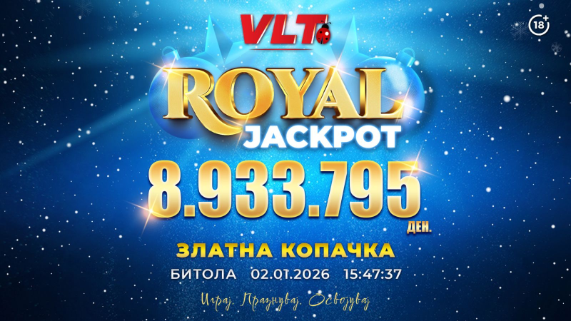 ПРАЗНИЧНА ВЛТ ЏЕКПОТ МАГИЈА: А.В. ОД БИТОЛА ЈА ЗАПОЧНА 2026 СО РОЈАЛ ЏЕКПОТ ОД 8.933.795 ДЕНАРИ!